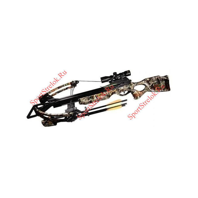 В комплекте: оптический прицел 4*32, кивер, ремень, 4 карбоновые стрелы, ручной натяжитель.