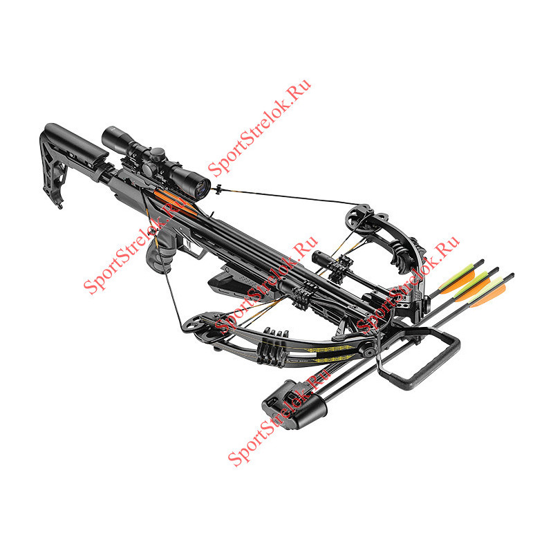 В комплекте: Оптический прицел, кивер для стрел, взводящая верёвка, 3 карбон стрелы, воск, набор ключей.