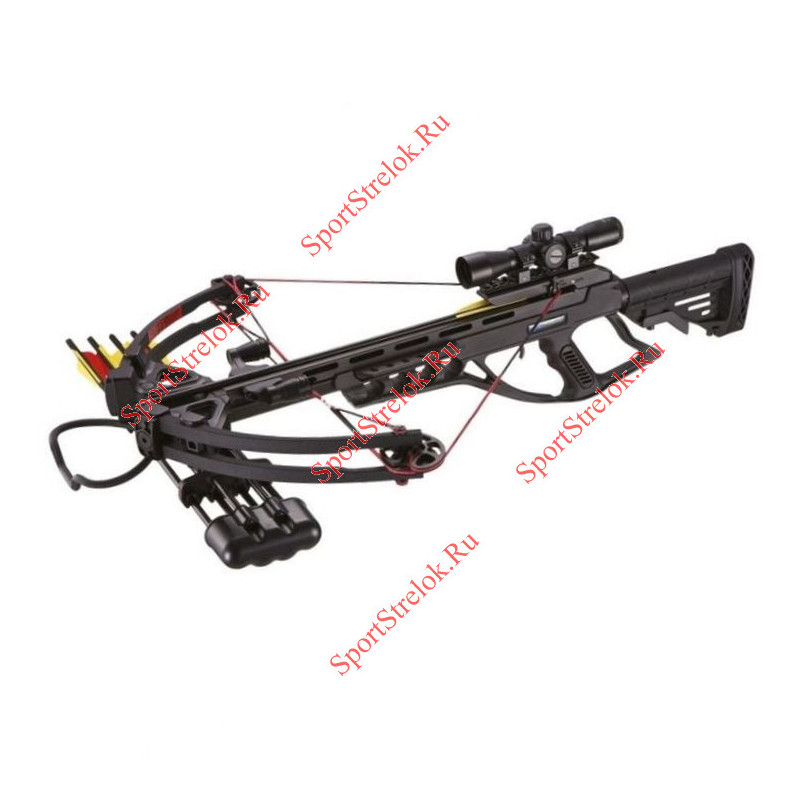 Комплектация: Оптический прицел 4*32, плечи в сборе , 4 стрелы аллюминий, ключи для сборки, воск.