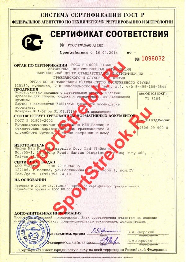 Арбалет Тарантул с деревянным прикладом, модель MK-150A1 одна из самых популярных араблетов в России. Арбалет относится к типу рекурсивных арбалетов, прост в эксплуатации, но вто же время надёжен. У арбалета Тарантул имеется двусторонний предохранитель, автоматически фиксирующийся при заряжения или взведения тетивы. Преимущество двустороннего предохранителя дает возможность с удобством эксплуатировать его как правшам так и левшам. Плечи изготовлены из композитных материалов. Планка с регулируемым обычным прицелом типа Ласточкин Хвост. На планку есть возможность установить оптический и коллиматорный прицел. Вес арбалета 2 с лишним кг. Используется данная модель как в спортивно-развлекательных целях, так и для охоты. Приклад у арбалета изготовлена из натурального дерева покрытая специальным лаком.
