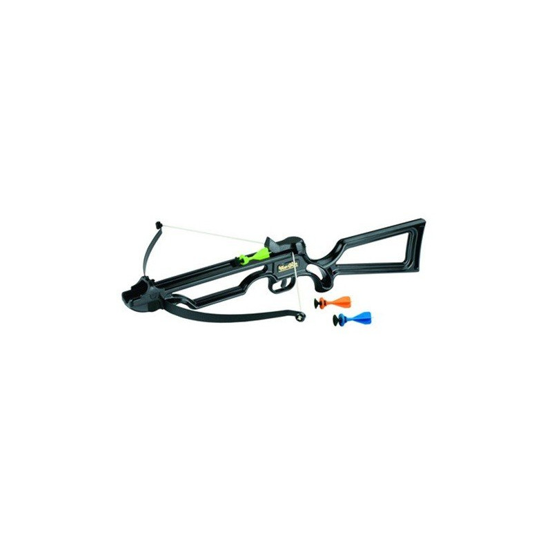 Прекрасный подарок для ребенка. Детский арбалет сделан из пластика. Арбалет выкрашен в черный цвет. Тетива сделана из нейлона. Арбалет стреляет стрелами с присосками. В комплекте три присоски.