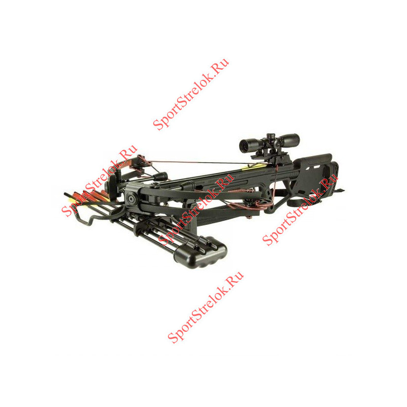 В комплекте: оптический прицел 4х32 , 4 алюминиевые стрелы, подствольный кивер на 4 стрелы, плечевой ремень, воск для смазывания тетивы, натяжитель тетивы.
