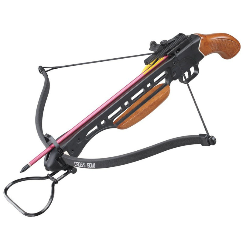 Короткая ручка вместо приклада делает арбалет более компактным. Исключительно прост в эксплуатации. Оснащен автоматическим предохранителем и механическим прицелом.