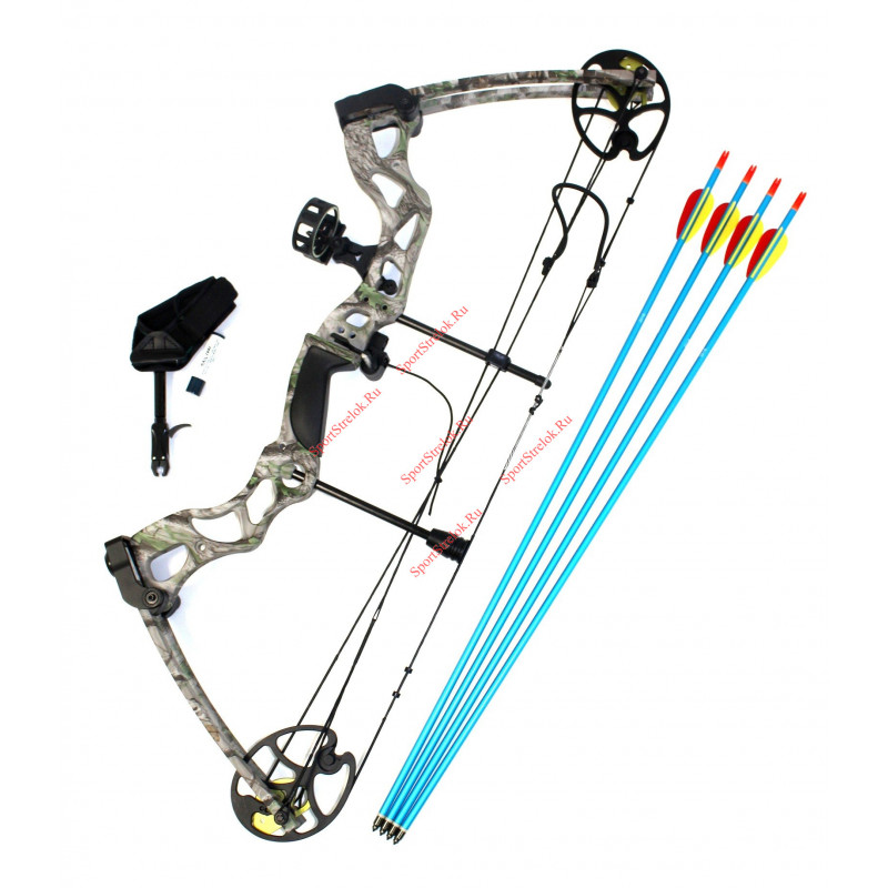 В комплекте:Полочка Вискер, прицел с 3 Пина, пип-сайт, петля релиза, релиз, 2 стрелы, виброгаситель тетивы