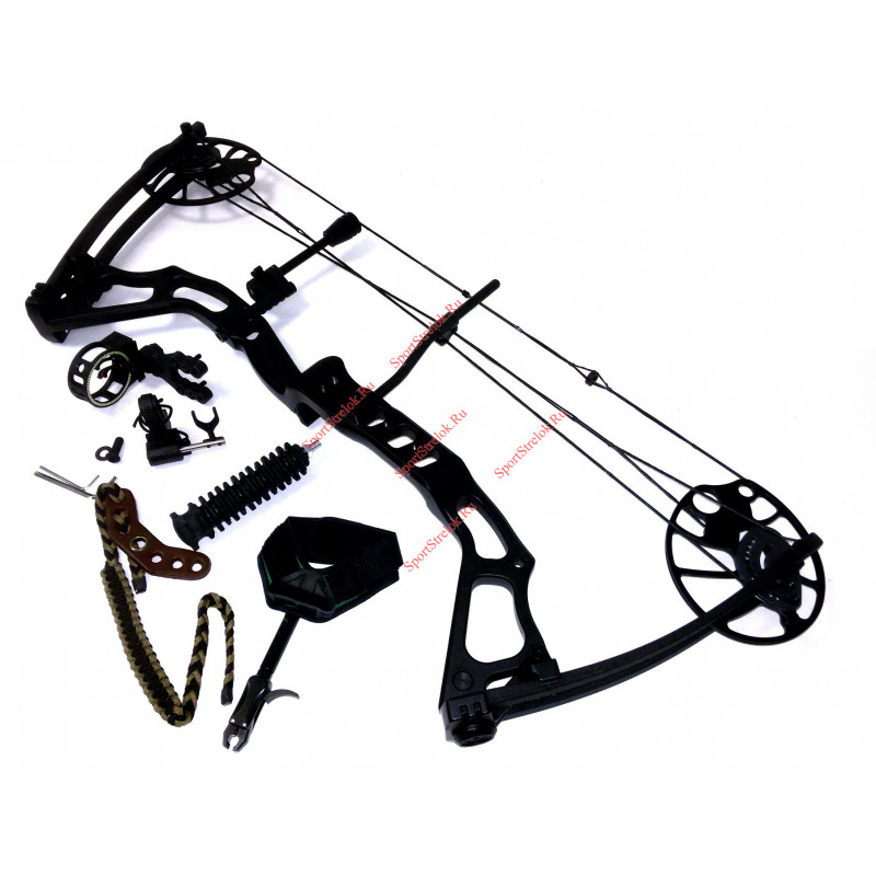 В комплекте: 3 Карбоновые стрелы, Полочка Вискер, Прицел 3 пин, Кивер для стрел, Петля для релиза, Релиз, Стабилизатор, Пип-сайт.
