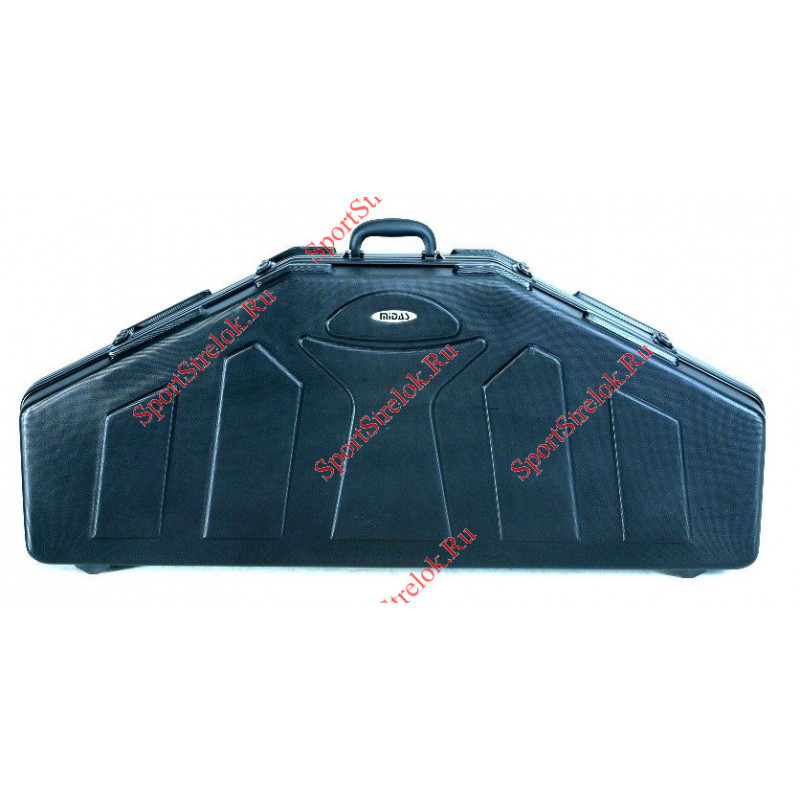 Кейс изготовлен из прочного пластика. Изнутри кейс обделан мягким материалом типа поролон. Имеется специальная ручка для переноски. В кейс возможно уложит одновременно два лука, либо лук и все необходимые аксессуары.