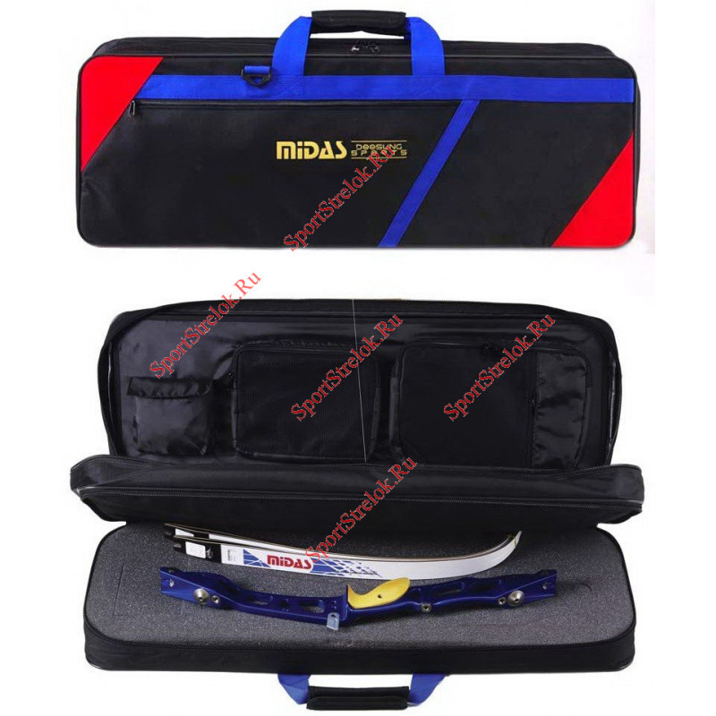 Чехол Midas сделан из плотного, прочного материала. Представляет из себя небольшую сумку, в одно из отделений очень надежно укладывается разобранный лук, а во второе - аксессуары, используемые при стрельбе и для стрельбы.