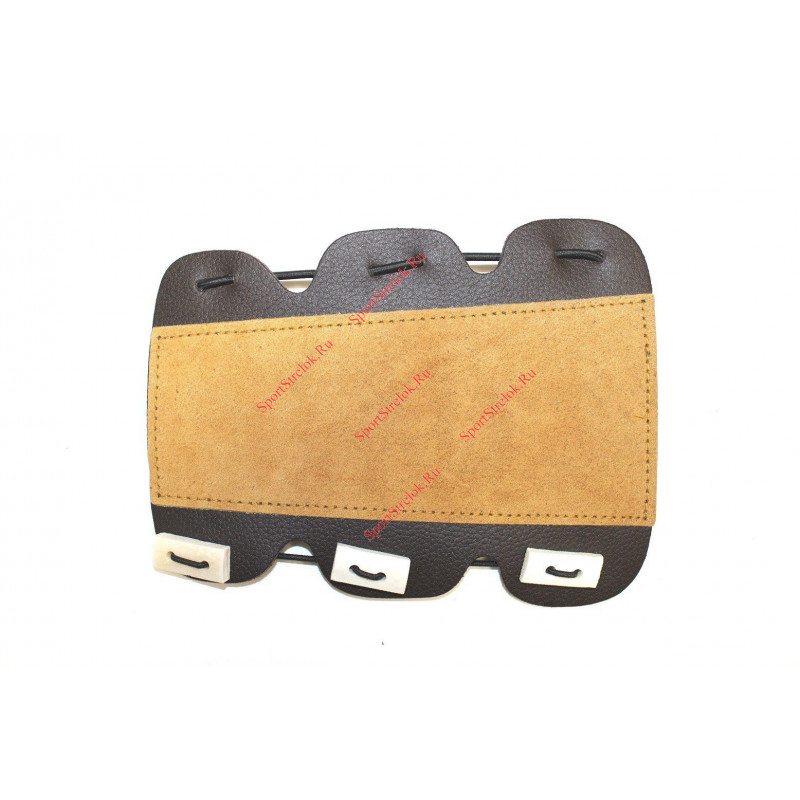 • Крага для лука KR-22 сделана из натуральной замши. В центральной части краги пришит слой замши темного цвета. Слой замши увеличивает защиту руки лучника. К руке лучника крага крепится при помощи растягивающегося шнурка.