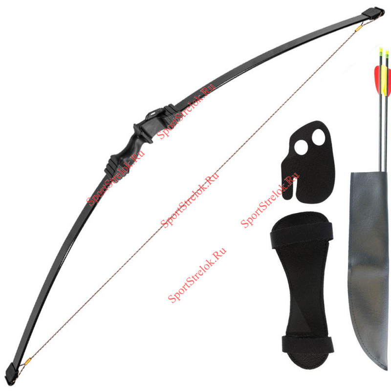 В комплект входят: 2 текстолитовые стрелы, колчан, полочка, крага, напальчник, прицел. Может использовать и правшами, и левшами