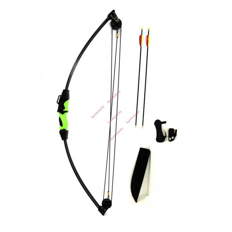 Блочный лук для начинающих лучников. Рукоять сделана из прочного твердого пластика. Плечи сделаны из текстолита, что обеспечивает равномерную натяжку лука. Лук выкрашен в черный, на рукояти имеются прорезиненные вставки, выкрашенные в салатовый цвет. Особенность данной модели является то, что лук может использовать как правша, так и левша.