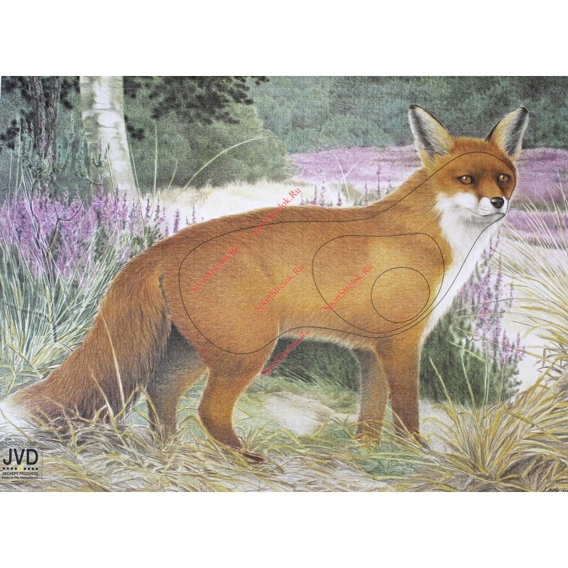 Мишень JVD - Лиса прекрасно подойдет для начинающих охотников и людей, которым надоело стрелять по стандартным мишеням. На мишени отмечены все зоны, в которые необходимо попадать фазану, для того чтобы нанести ему максимум повреждений. Мишень JVD отличается от простой бумажной тем, что у нее имеется слой нейлоновой нити внутри. Благодаря такой конструкции мишень JVD прослужит Вам намного дольше, чем обычная бумажная.