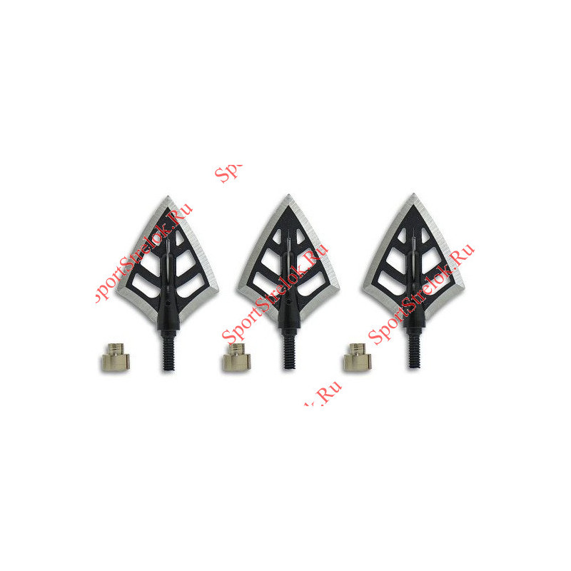 Два мощных широких лезвия и два маленьких, расположенных крестообразно дают широкий раневой канал и глубокое проникновение. Особенностью наконечников является утяжелитель, который можно снять, таким образом уменьшив их веc.