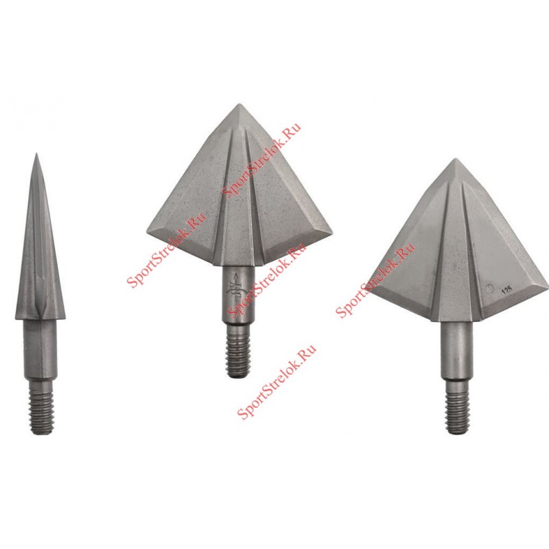 Тяжелые литые наконечники с двумя толстыми лезвиями и массивным сердечником обладают огромным запасом прочности и не боятся ни костей, ни даже древесины.