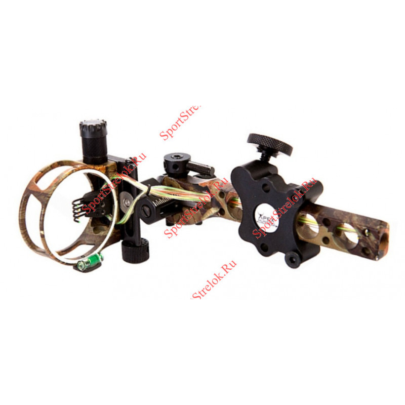 Прицел с пятью пинами и возможностью точной микрорегулировки положения. длинная штанга прицела повышает точность и позволяет регулировать вынос.