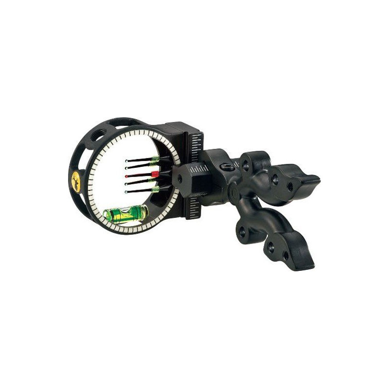 Прицел для блочного лука Punisher 5 от компании Trophy Ridge. Крепежная часть прицела сделана из высокопрочного сплава алюминия и обладает высокой прочностью. Цифра 5 в названии прицела означает, что прицел имеет 5 пинов. Пины прицела имеют дополнительную намотку для накопления света, что дает возможность использовать прицел при увеличении темноты. Толщина пинов составляет 0,29. Также прицел имеет возможность замены пинов. Для увеличения удобства прицеливания, на прицел установлено контрастное светоотражающее кольцо. На прицел установлен водный уровень. Благодаря наличию вертикальной и горизонтальной регулировки, прицел можно настроить максимально точно. Также у прицела имеется возможность установки реостата, подсветка пинов. Прицел можно использовать, как на праворуких луках, так и на леворуких.