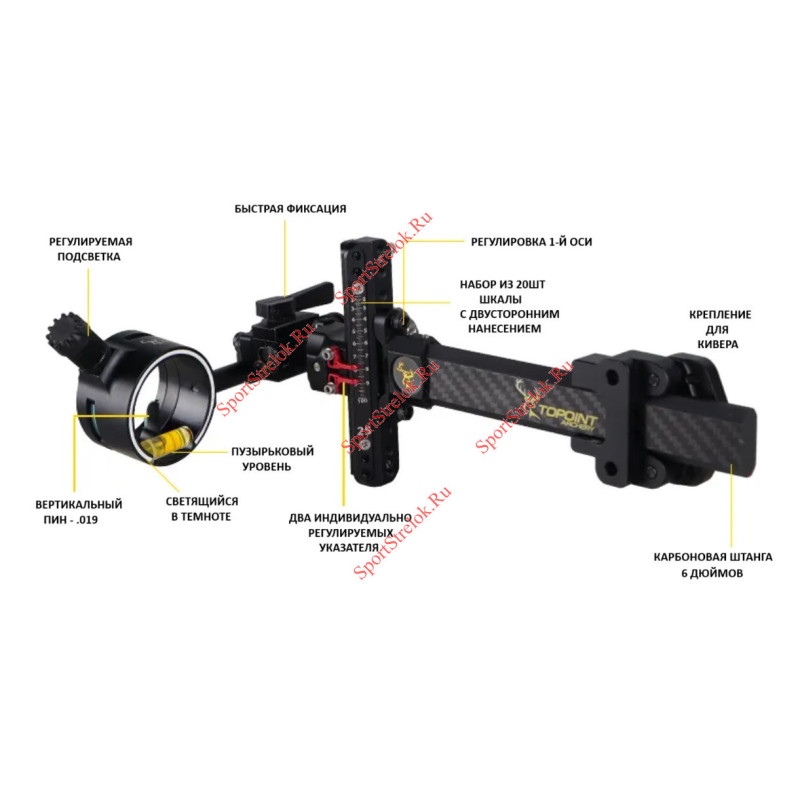 Прицел для блочного лука Topoint TX9610 Карбоновый в наличии с доставкой наложенным платежом по России, Казахстану, Белоруссии с оплатой наложенным платежом