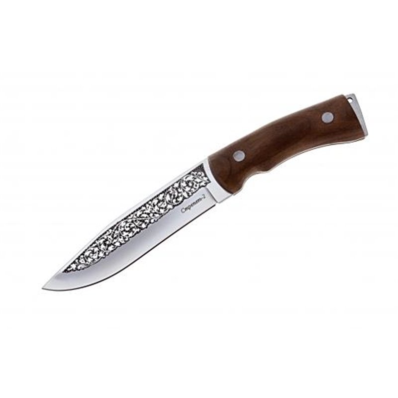 Рукоять дерево - кавказский орех, уникальность текстуры и богатство цветовых оттенков являются отличительной чертой кавказского ореха. Дерево устойчиво к влаге, хорошие показатели твёрдости и плотности, что обеспечивает хорошую износостойкость.