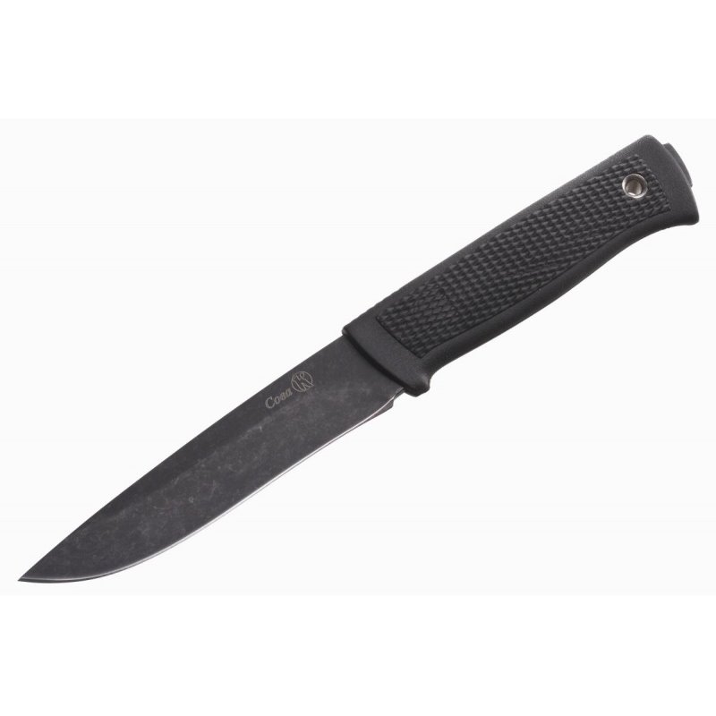 Нож Сова имеет классический прямой клинок, который подходит для решения большинства ежедневных задач на охоте, на рыбалке или в быту. Те, кто предпочитает использовать ножи для тонкой работы, по достоинству оценят высокие спуски и тонкое сведение. Те, кто привык использовать нож в тяжелых условиях, оценят толщину обуха и сплошной клинок, который проходит насквозь через рукоять. Благодаря такой конструкции нож легко режет толстые ветки и выдерживает большие нагрузки на скручивание. Клинок изготовлен из устойчивой к коррозии стали, которая закалена до 55-57 HRC. Рукоятка ножа выполнена из практичного эластрона, с цепким рифлением. Нож рассчитан на эксплуатацию в самых различных условиях: легко и без последствий «переночует» в траве или в снегу, если вы вдруг случайно забудете убрать его. Нож укомплектован пластиковыми ножнами, которые подвешиваются к поясу с помощью синтетической стропы. Нож плотно сидит в ножнах, не издает никаких звуков при движении. Нож легко вынимается из ножен одной рукой.