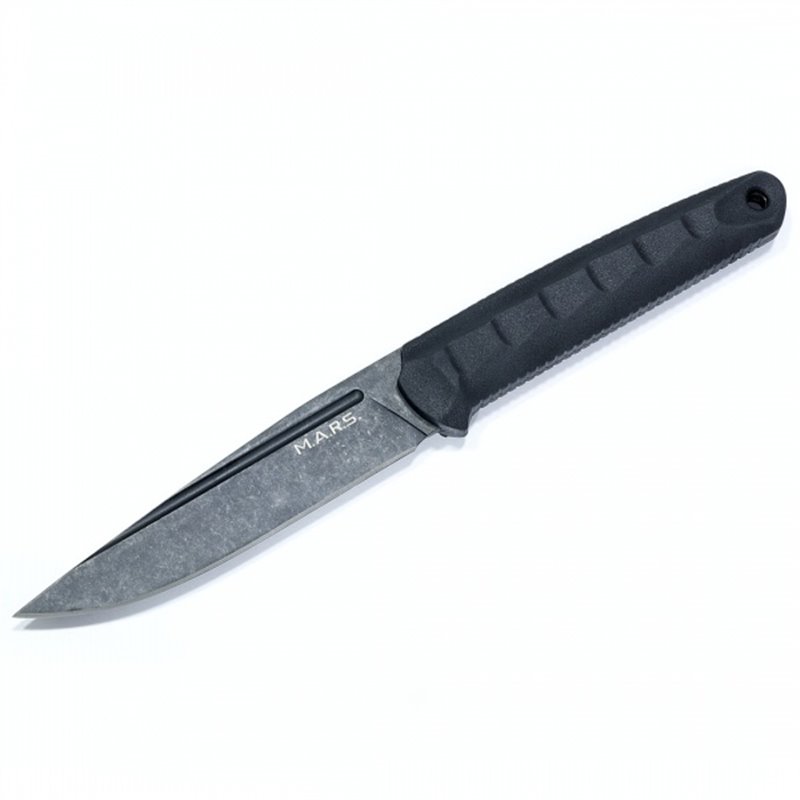 Новинка нашего производства "МАРС", была поставлена задача изготовления универсального, удобного повседневного ножа. Нож сочетает в себе удобную и цепкую рельефную рукоять. Цельнометаллическая конструкция обеспечит общую уверенность в ноже. Заточка со спусками от обуха придаст отличные режущие качества. Ножны с универсальным настраиваемым подвесом тек-лок дают возможность крепления ножа на любой ремень или лямку от рюкзака, в любом положении, а фиксация клинка не даст возможности случайному выпадению.