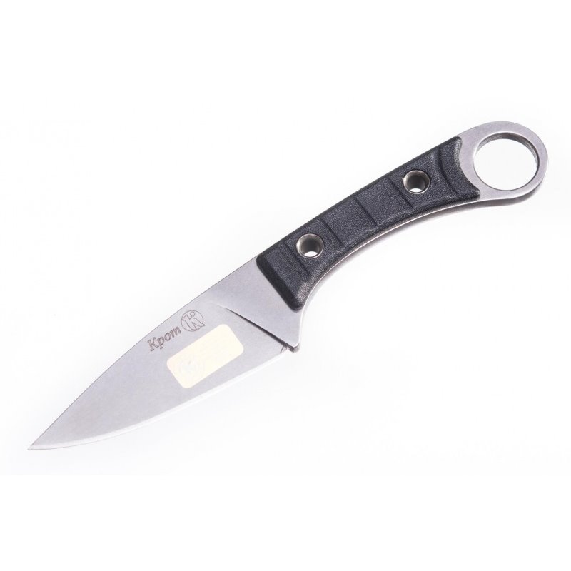 Ножны имеют крепежные отверстия, которые позволяют разместить нож на одежде или снаряжении любым другим способом. За счет этих же отверстий к ножнам можно прикрепить НАЗ (носимый аварийный запас) Несмотря на свои небольшие размеры, нож комфортно ложится в руку, а компактная рукоять имеет цепкий хват благодаря дополнительным вертикальным насечкам . За счет удобной рукоятки, можно передать на клинок четко рассчитанное усилие при резе и максимальное усилие при совершении колющего удара. При помощи отверстия в тыльной части, нож надежно фиксируется пальцем при прямом и обратном хвате - его практически невозможно выбить из руки.
