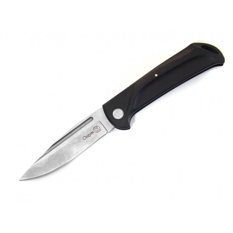 Складной нож "Скаут", новинка нашего производства. Особенности данной модели - доступная цена, простая конструкция и легкий вес. Но при этом нож обладает отличными режущими свойствами и эргономичной рукоятью выполненной из ударопрочного АБС пластика.