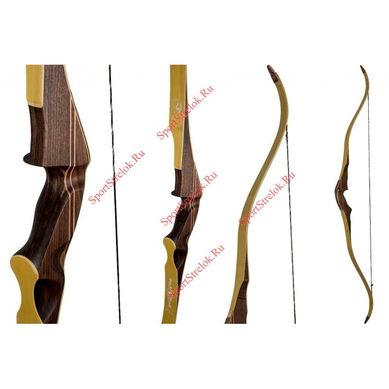 Неразборный рекурсивный лук Buck Trail длиной 60 дюймов имеют классическую форму, изогнутые плечи дают максимальное ускорение. Модель "CARIBOU" сделаны из лучших сортов ореха, бамбука и клена. Плечи из клёна с финишной отделкой прозрачным стекловолокном Gordon USA ("Карибу").